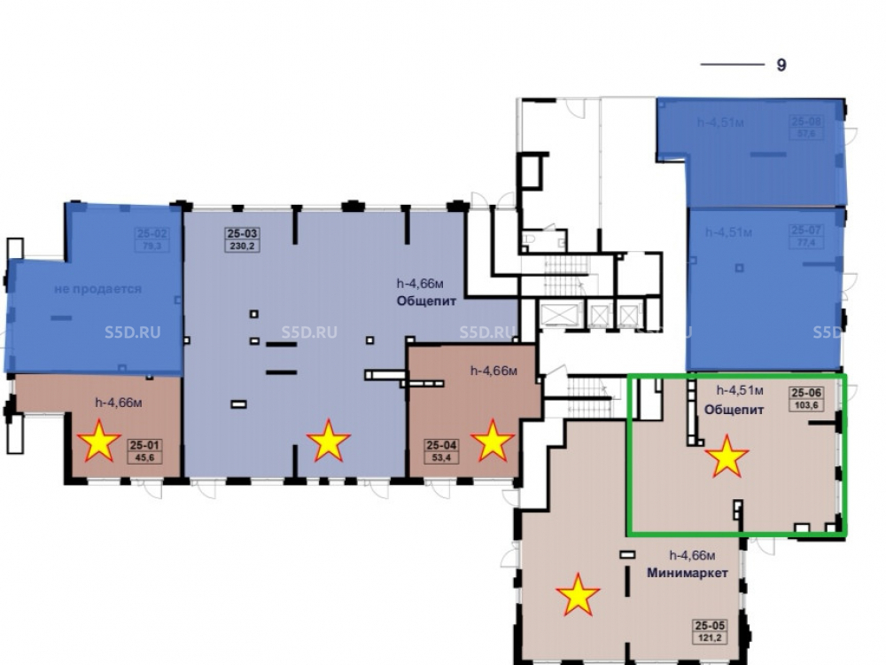 Общая площадь 103,6 кв метров. Высота потолка – от 4,66 метра. На фасадах предусмотрены ниши для кондиционеров и места под вывески. Все основные входы располагаются на уровне земли, в соответствии со стандартами без барьерной среды. Визуальная доступность вывесок и витрин. Эл.мощность: 31.08кВт