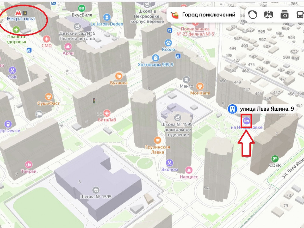Торговое окружение: Wildberies , Хостел , Суши бар , продукты , Салон красоты.