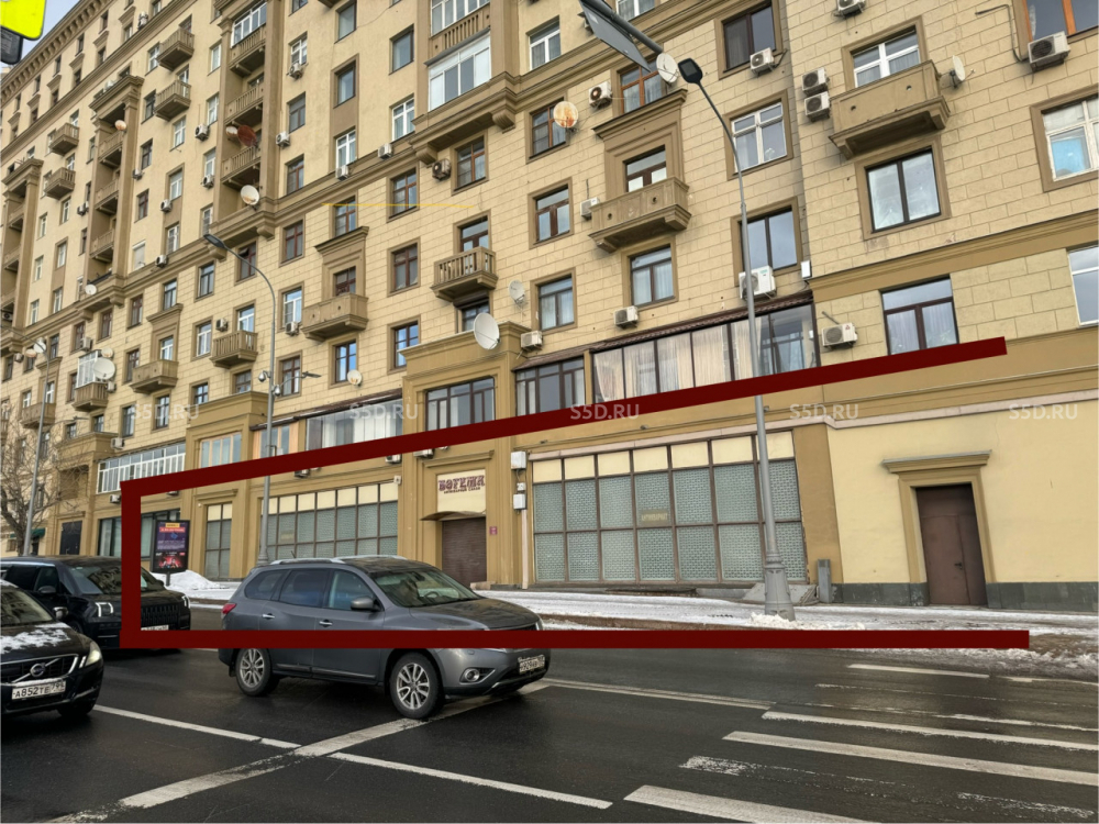 Аренда нежилого помещения свободного назначения расположенного по адресу: Москва, ЦАО, Новый Арбат 31/12, площадью 723 м2. Первая линия со стороны Смоленской набережной. 3 мин. от м. Смоленская, высокий пешеходный трафик обеспечивается близостью пешеходных зон.