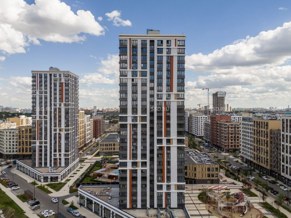 В проекте 13 жилых башен от 21 до 23 этажей и 9 корпусов до 23 этажей.