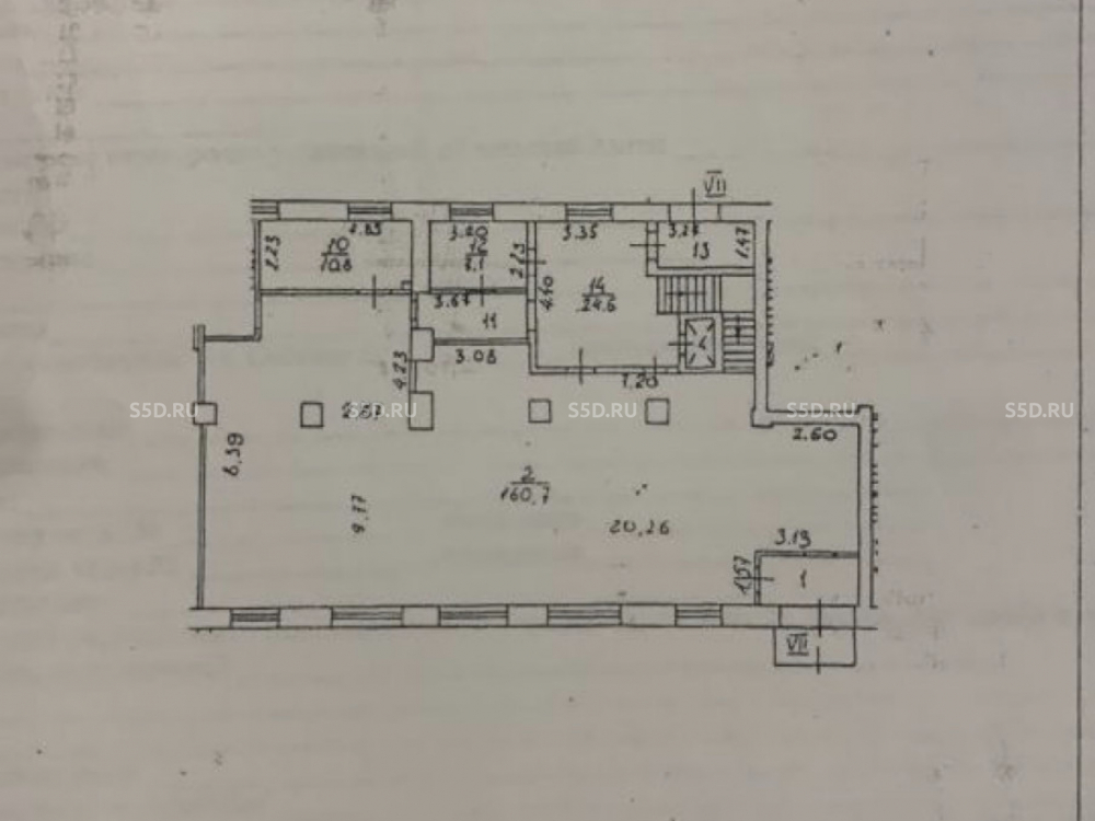 Общая площадь - 215.6 кв.м, 1-й этаж, первая линия, витринное остекление, открытая планировка, вся площадь в