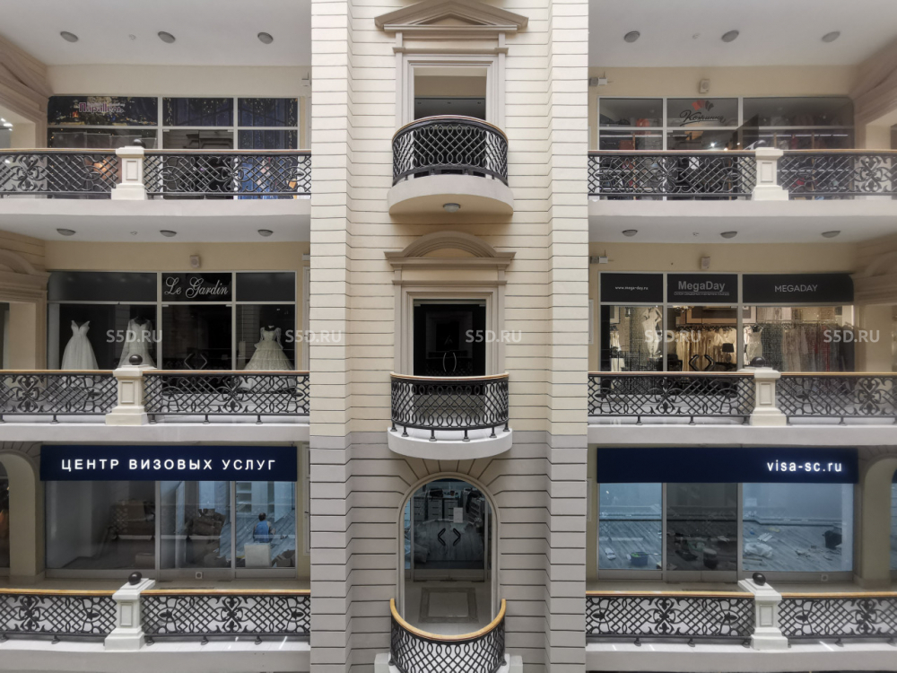В здании также установлены 4 эскалатора фирмы "Шиндлер". По периметру атриума на балконах, связанных общими галерейными коридорами, располагаются бутики (кроме 5 этажа). Основное направление торговли свадебные платья и свадебные аксессуары. Кроме того в здании расположены магазин мужской одежды, ювелирных изделий, банк, студии красоты, туристические фирмы, всего более 50 магазинчиков. На 5-м этаже ранее располагался ресторанный комплекс, но в настоящее время все технологическое оборудование демонтировано. Электричества 538 кВт.