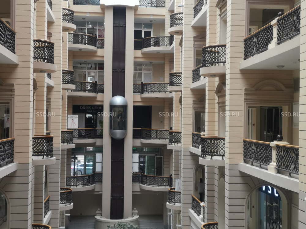 Здание имеет 5 наземных этажей плюс один цокольный. В центре здания, начиная с цокольного этажа, устроен атриум со стеклянным куполом на кровле. Здание оборудовано панорамным лифтом грузоподъемностью 800 кг, грузовым лифтом г/п 1000 кг, пассажирским лифтом г/п 630 кг, все лифты производства "Содимас".