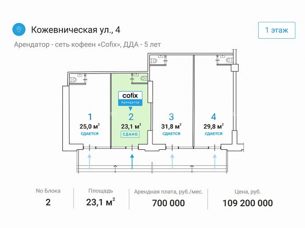 Кожевническая 4 - 23,1 кв.м / Арендный бизнес/ Cofix