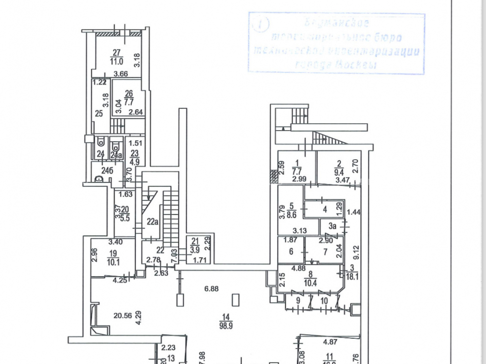 Технические характеристики: Общая площадь: 598 кв. м. Распределение по этажам: 1 этаж - 283 кв. м, Антресоль - 315 кв. м. Входная группа: отдельный вход с фасада, и так-же вход со двора. Большие витринные окна по всему параметру. Высота потолков: 1 этаж – 3,4 м, Антресоль 3,4 м. Мощность: ~100 кВт. Железобетонные перекрытия.