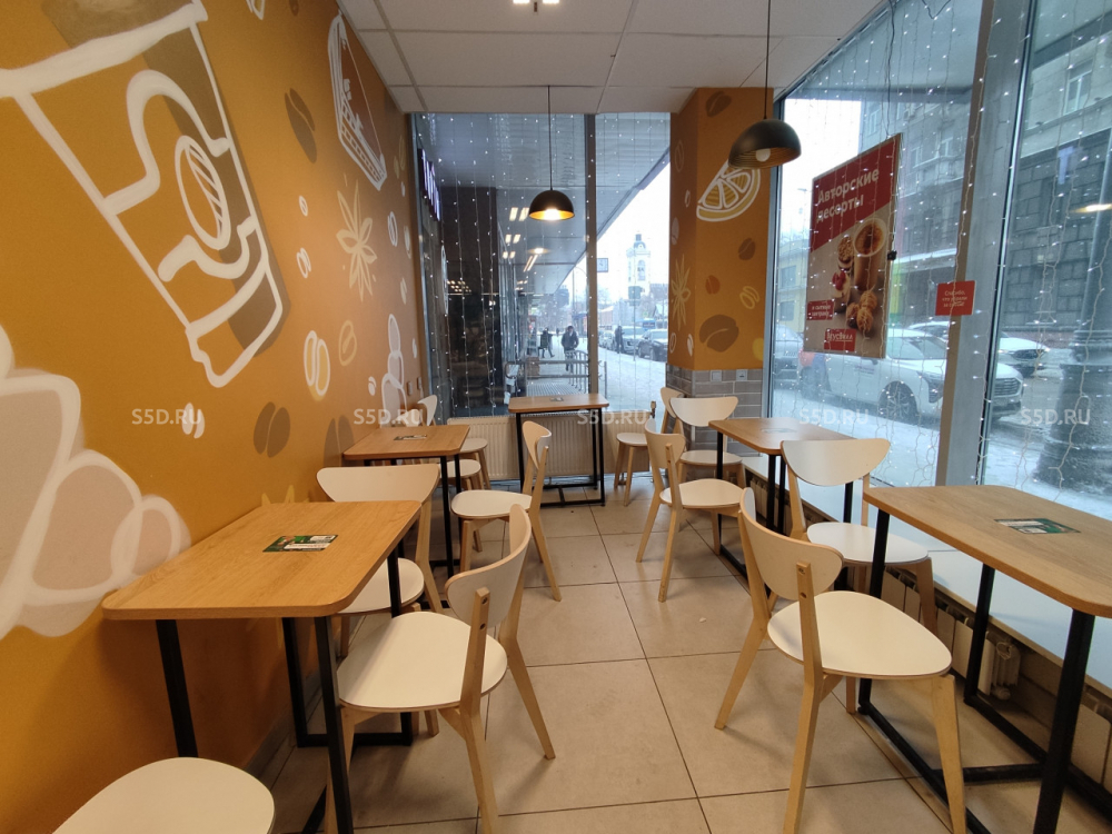 Первая линия домов. Первый этаж. Общая площадь 345,8 м2. Отдельный вход, отсутствие ступеней, пандус, витринные окна, высота потолков 3,35 м. Мощность 50 кВт, технологическая вытяжка на гидрофильтрах, видеонаблюдение, кондиционирование, уличная подсветка. Состояние помещения: хороший ремонт.