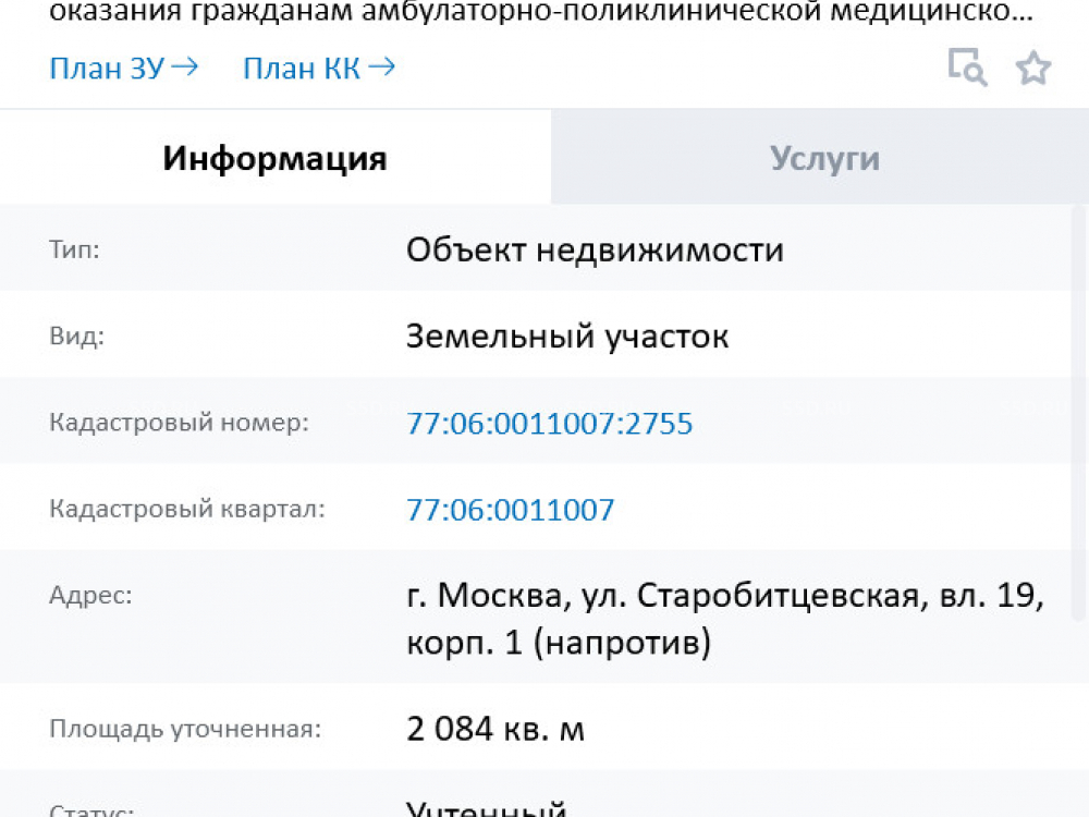 г. Москва, ул. Старобитцевская, вл. 19, корп. 1 (напротив)- 1277 м2/Продажа ОСЗ
