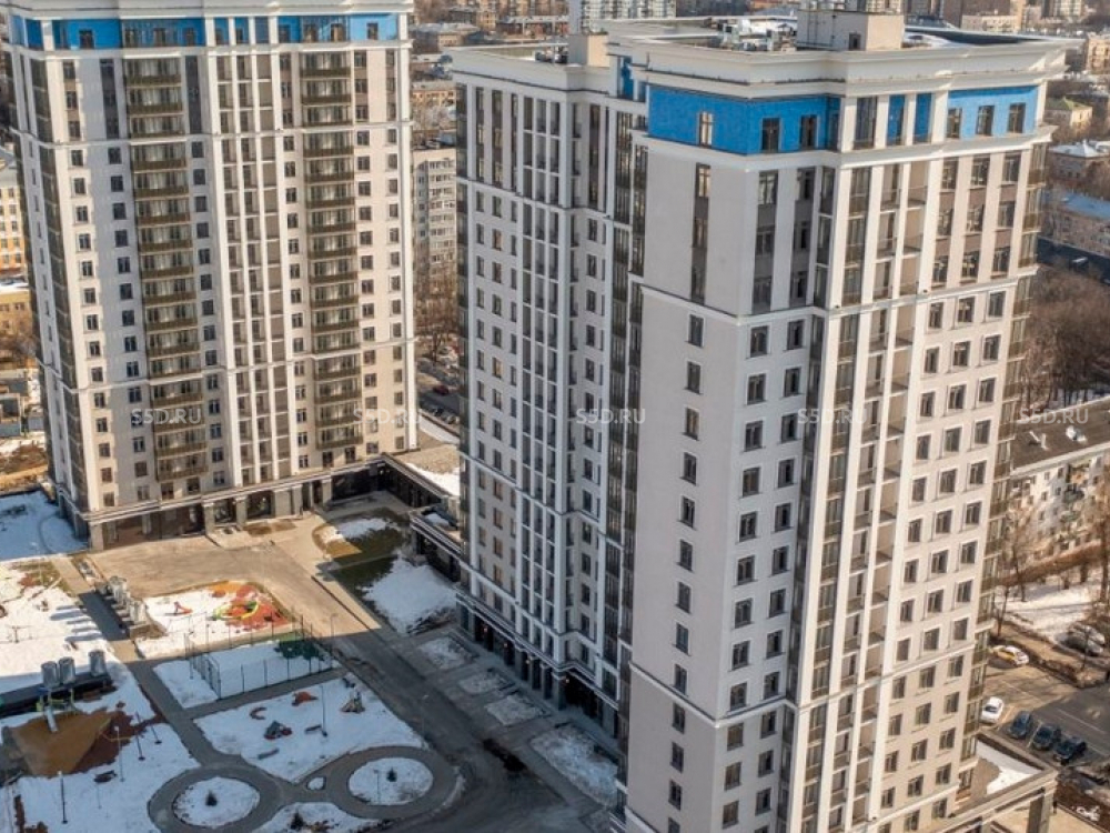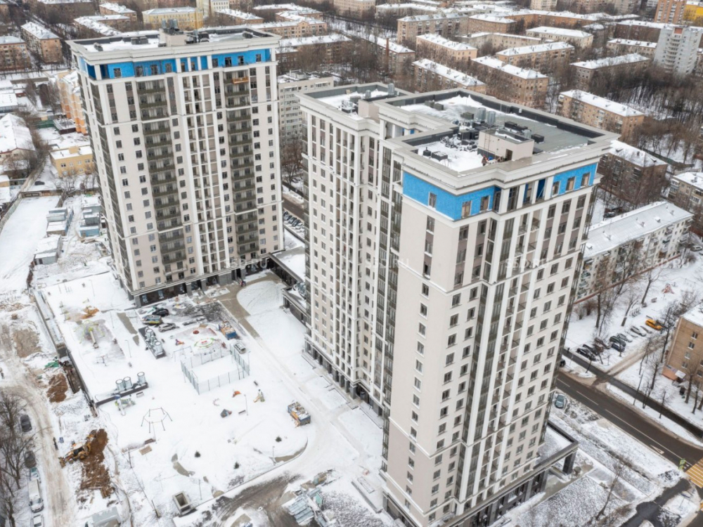 ЖК бизнес-класса с отдельно стоящей автостоянкой. Монолитное жилое здание состоит из двух корпусов переменной этажности 18-19 уровней, объединенных общим подземным паркингом.