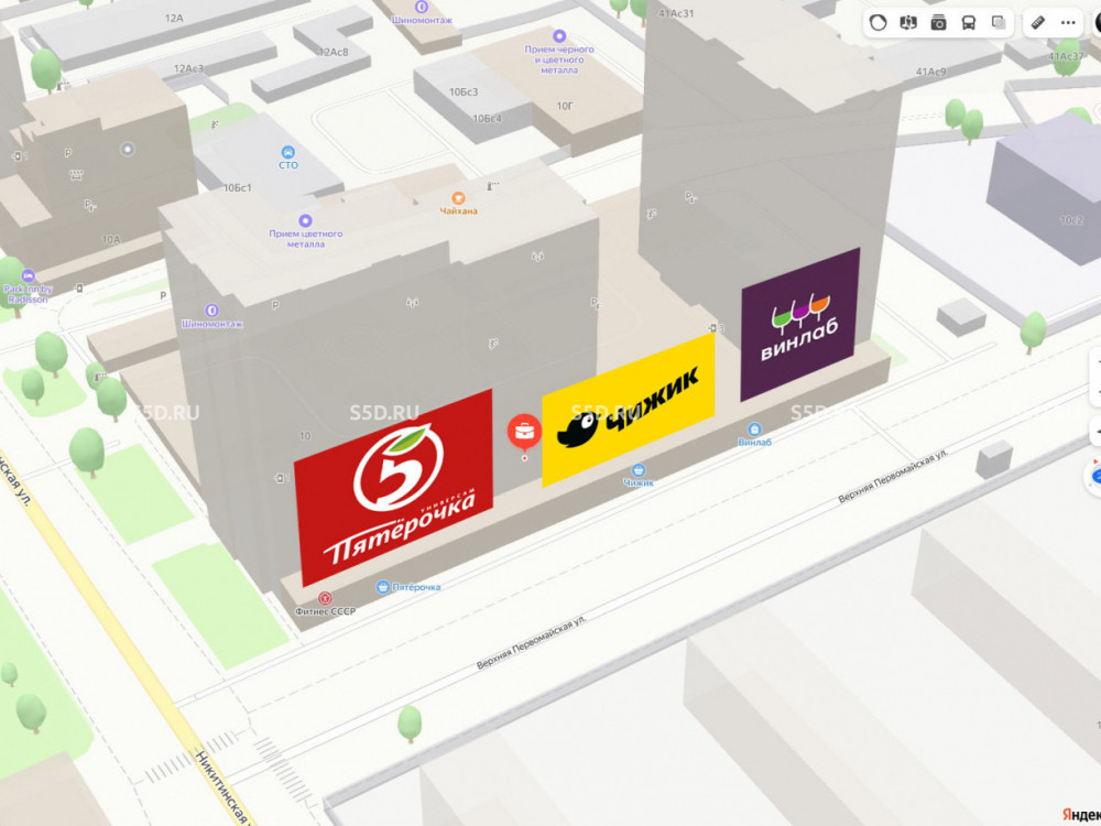 Торговое соседство: Пятерочка, Чижик, Винлаб, Фитнес клуб СССР.