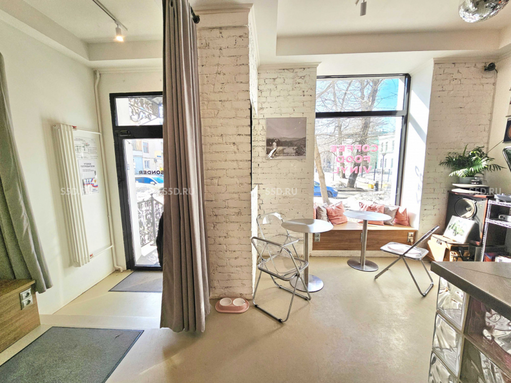Площадь - 50.5 кв.м. 1 этаж 7-ти этажного жилого дома Сталинской эпохи. Отдельный вход, торцевой фасад здания в направлении к метро. Презентабельная входная группа - крыльцо с козырьком. Витринное остекление. Вывеска на фасаде.. Электрическая мощность 15 кВт. Высота потолков 3.2 м. Центральные коммуникации. Телефония, интернет, кондиционеры. Помещение с отделкой. Въезд через шлагбаум во двор с возможностью паркинга.