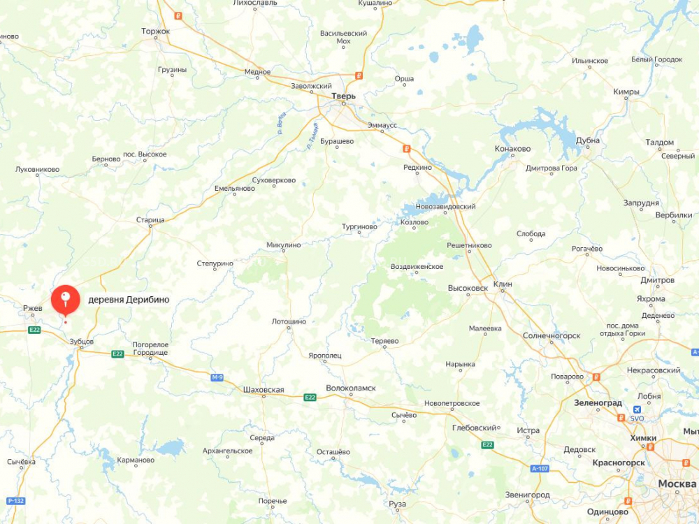Участок расположен на юго-западной части Тверской области вблизи д. Дерибино. Въезд к Новорижскому шоссе. Расстояние до МКАД – 201 км. Ближайшие населенные пункты: г. Ржев – 58 км., г. Зубцов – 17 км.