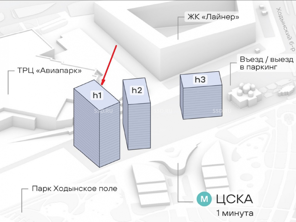 Метро «ЦСКА» и ТЦ «Авиапарк» в 1 минуте пешком.