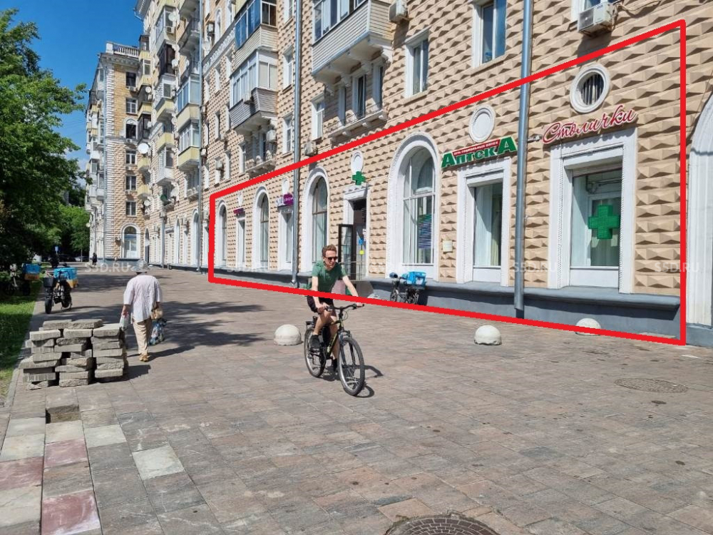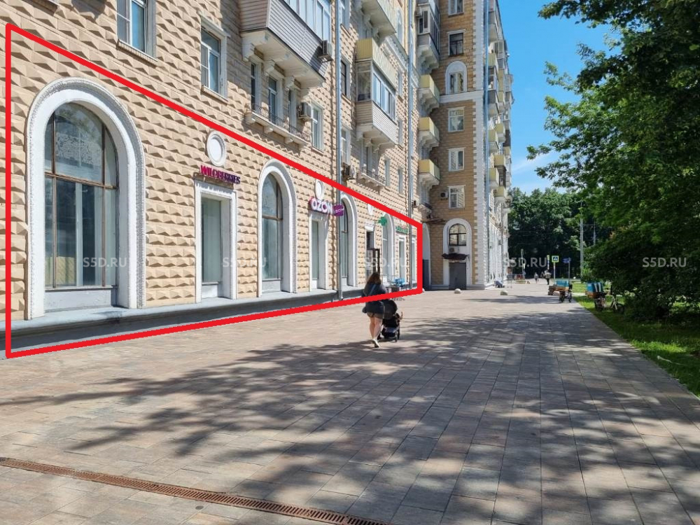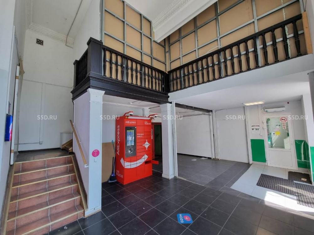 Помещение расположено на первом этаже 9-и этажного жилого дома 1952 года постройки. Общая площадь - 609.9 м2. (из них на минус первом - 245 м2, первый этаж - 279 м2, антресоль - 85,9 м2). Высота потолков - первый этаж: 2.50 м (под антресолью) и 5.30 м, минус первый - 2.50 м. Электрическая мощность - 45 кВт. Отдельный вход - с первой линии. Технический подъемник - со двора. Витринные окна, красивый фасад. Все центральные коммуникации (ХВС, ГВС, Отопление, Канализация).