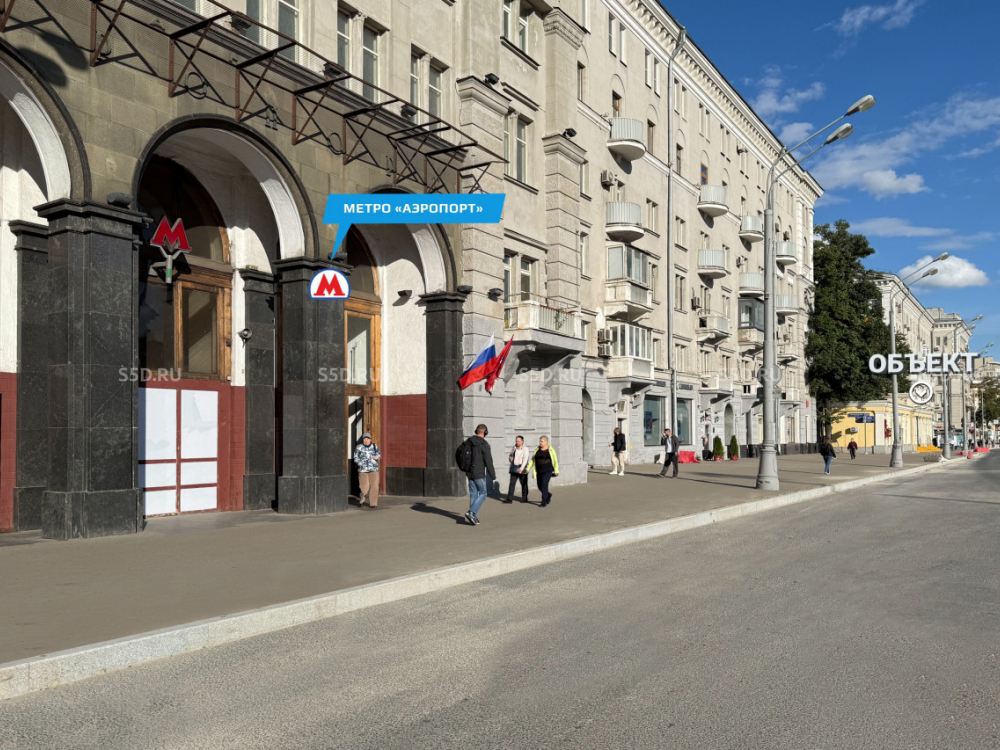 Объект находится рядом с метро "Аэропорт" - менее 1 минуты пешком.