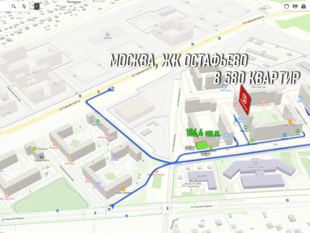 Адрес: Москва, НАО, ЖК Остафьево, Логинова, 1к1