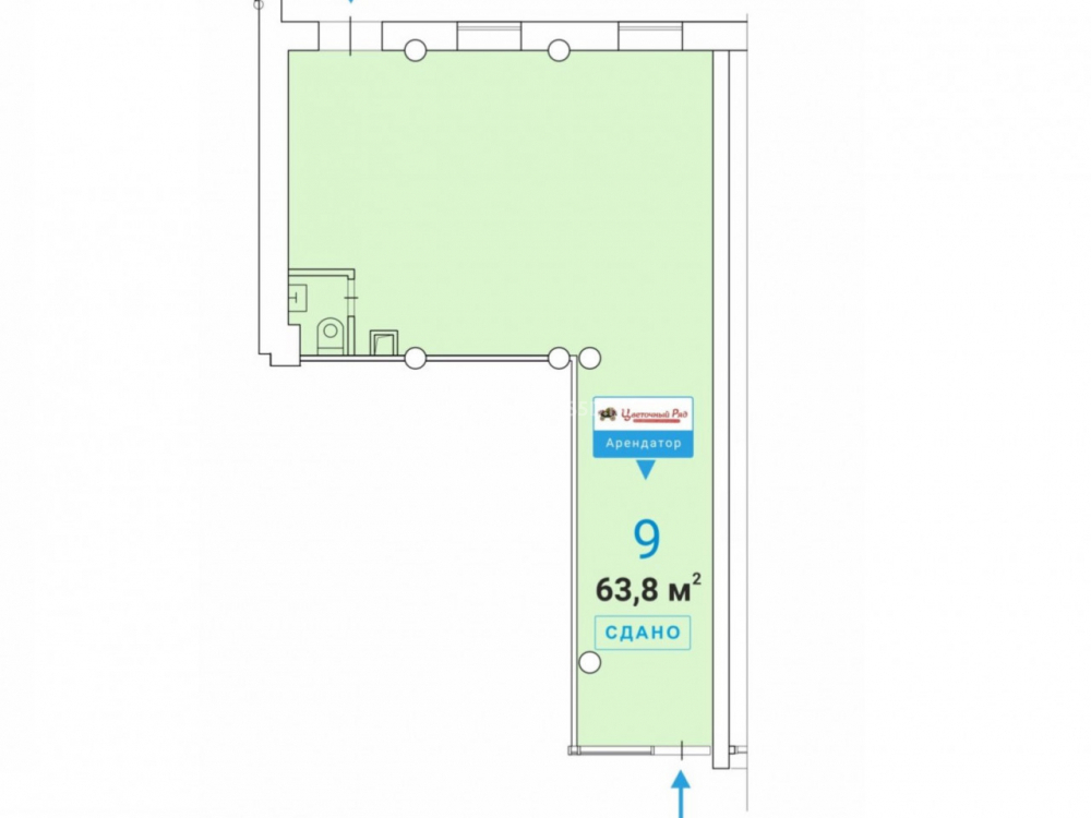 Общая площадь 63,8 кв.м. 1-й этаж жилого дома. 1-я линия. Возможность работы 24/7. Витринное остекление с фасада. Место для рекламы/вывески. Все центральные коммуникации. Блок 9