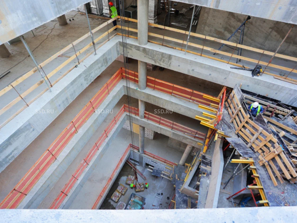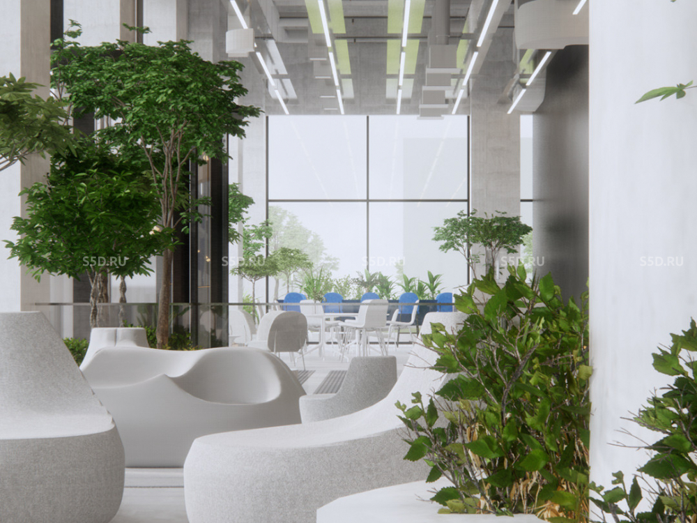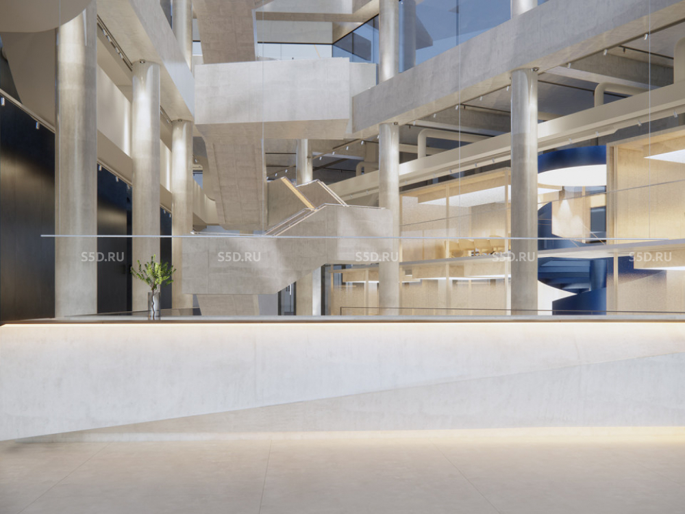 5 этаж: Общая площадь - 1 478 м2, Высота потолков - 3,5 м. Рабочие места - 301 шт, Переговорные / 4 комнат, Терраса - 216 м2.