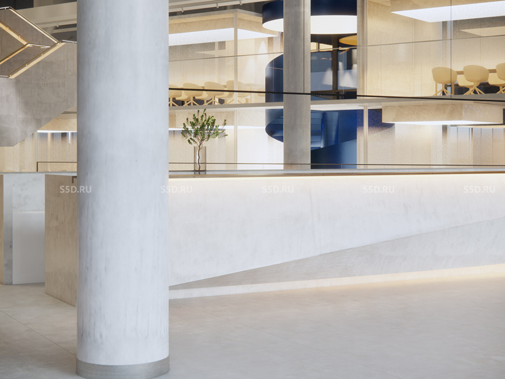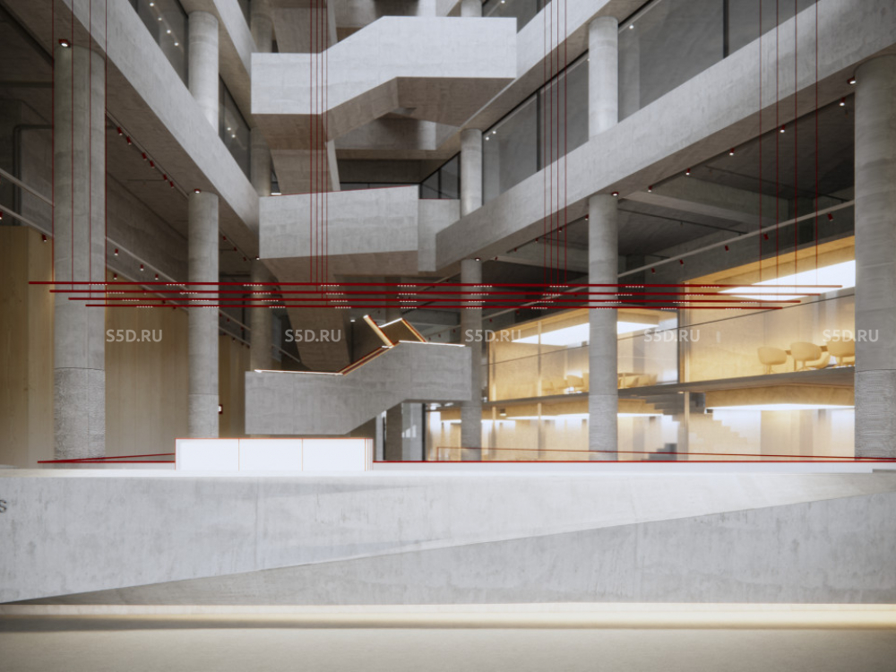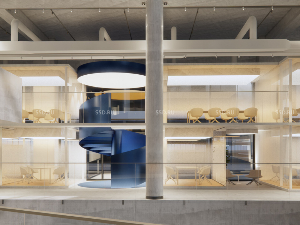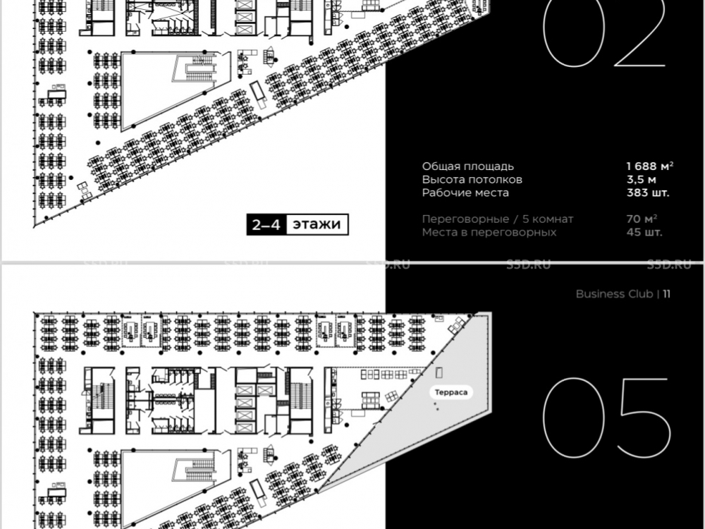 2-4 этаж: Общая площадь - 1 688 м2, Высота потолков - 3,5 м. Рабочие места - 383 шт, Переговорные / 5 комнат.