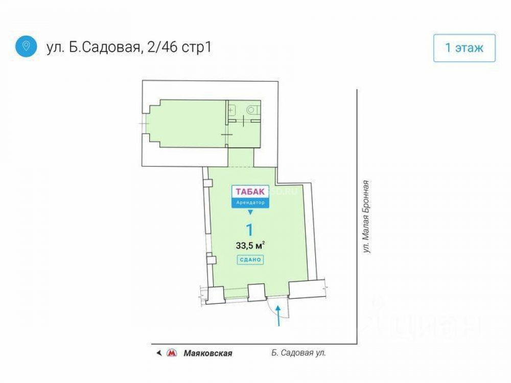 Москва, ул. Большая Садовая, д. 2/46с1 - 33,5 кв.м. - Продажа ГАБ Табак