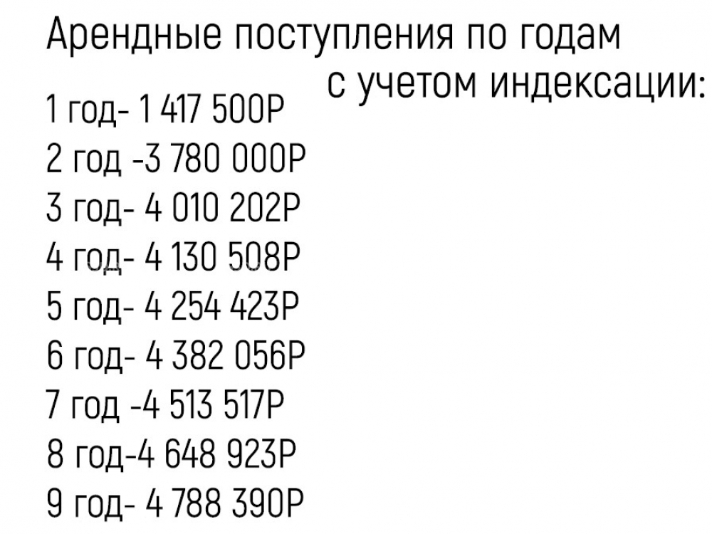 Общий МАП: 315 000 RUB (данный МАП является минимальным, при оптимизации арендаторов арендный поток можно значительно увеличить)