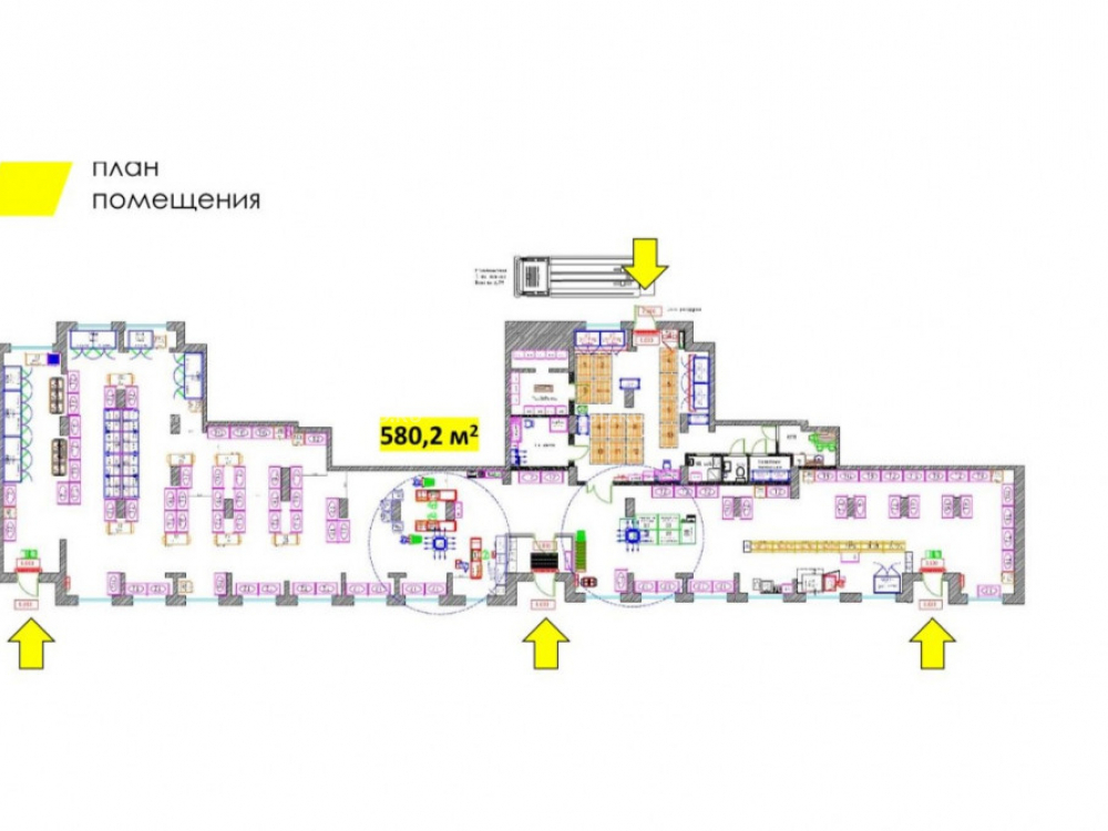 Технические характеристики: Площадь - 580,2 м2. Все в одном уровне. 1 этаж, 1 линия. Электрическая мощность - 116 кВт. Высота потолков - 3 м. 3 входные группы, зона погрузки-разгрузки. Витринное остекление. Большое количество окон.