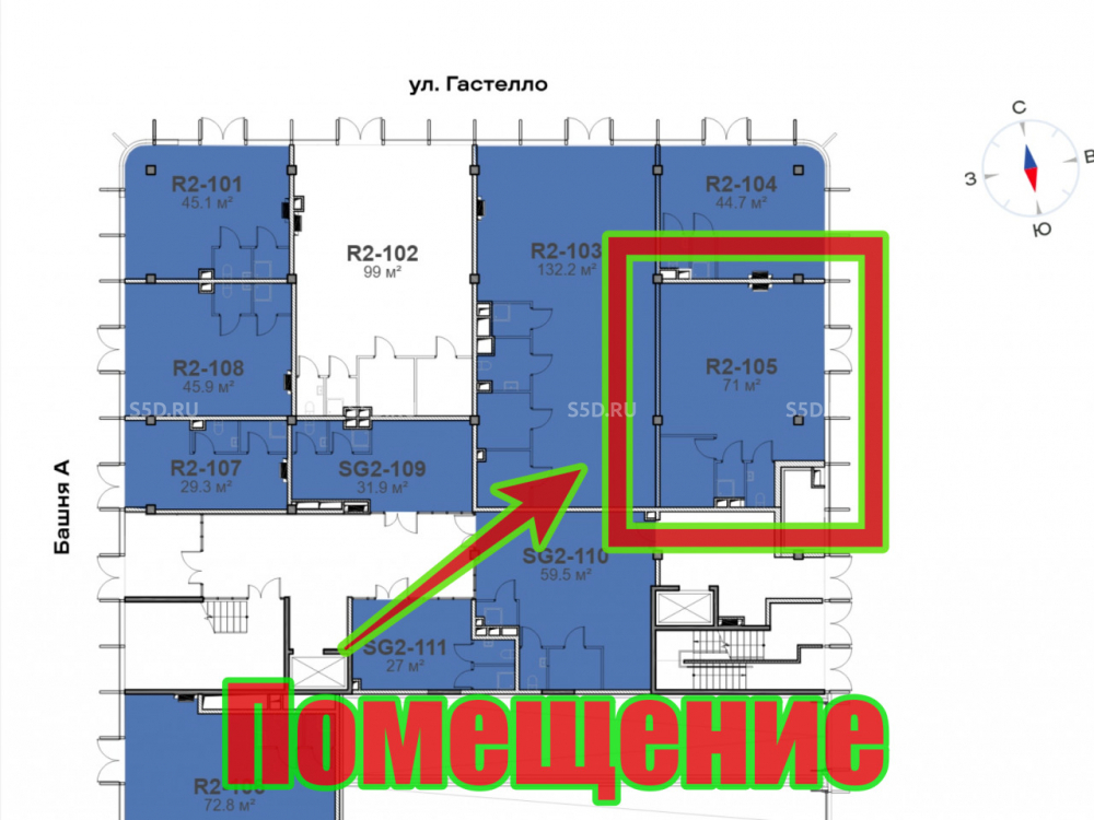 Продажа помещения свободного назначения расположенного в новом ЖК бизнес-класса SOKOLNIKI, по адресу: ВАО, Москва, ул. Гастелло, 30, площадью 71 м². В пешей доступности находятся две станции метро — «Сокольники» и «Электрозаводская». Удобный выезд на ТТК, шоссе Энтузиастов и Садовое кольцо. ЖК состоит из 3 башен высотой 24, 28 и 33 этажа. Включает в себя 763 квартиры (2 289 жителей) с чистовой и дизайнерской отделкой (быстрое заселение). В радиусе 10-15 минутной пешей доступности проживает 12 600 человек (по данным ЦПИ).