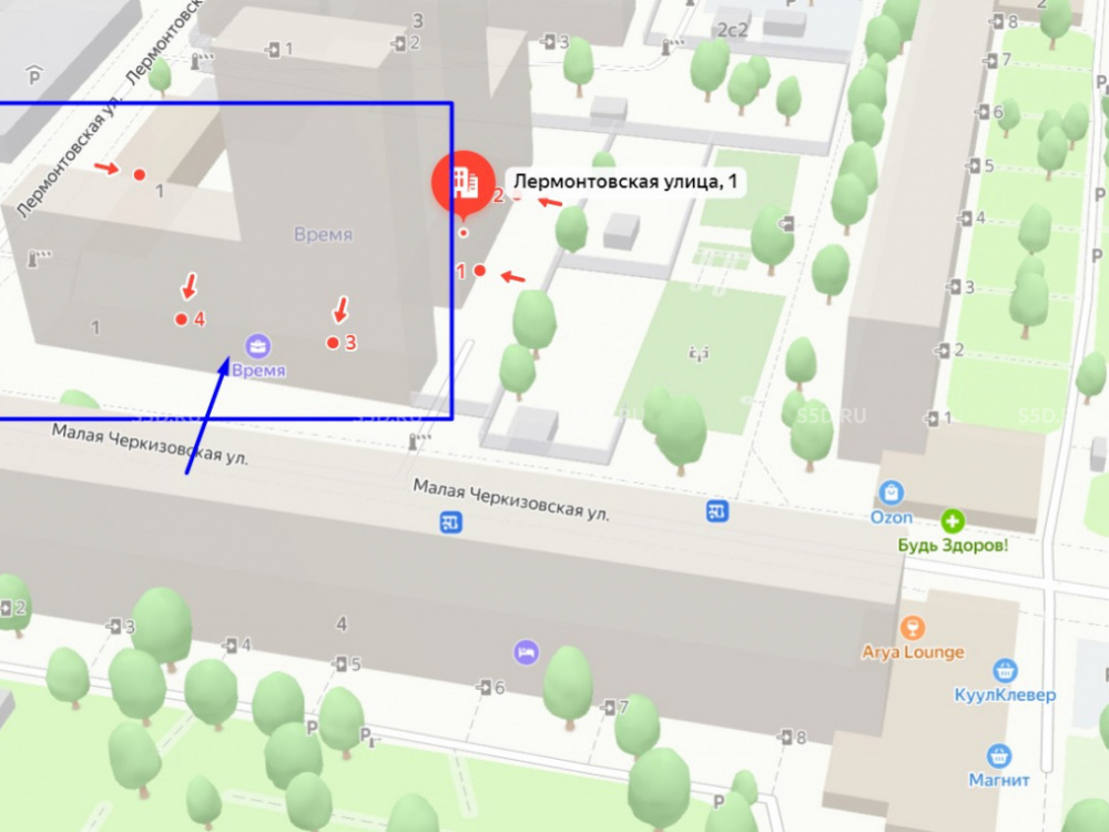 Торговое окружение: Магнит, Arya Lounge, Domino Pizza, НИИ Клинические медицины.