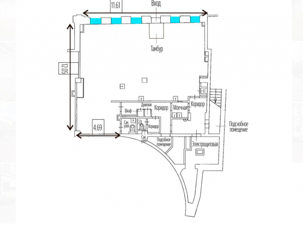 1 этаж 5 -ти этажного жилого дома, площадью 188,9 м². Вход с первой линии улицы Арбат, центральная система кондиционирования Missubishi Heavy, вытяжная вентиляция, электросеть 35,6 кВт, приточная система вентиляции Nordmann.
