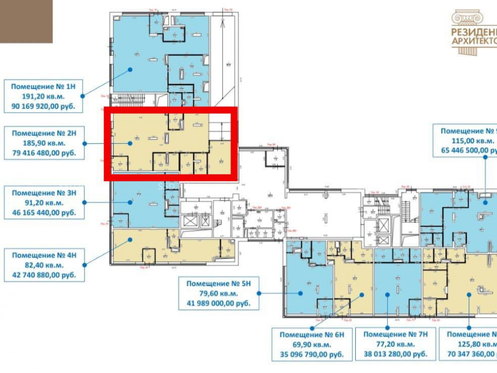 Помещение № 2Н общей площадью – 185,9 кв. м., 1 этаж. Отдельный вход. Витринные окна. Открытая планировка. Высокие потолки – 4 м. Электрическая мощность – 37,1 кВт. Центральные коммуникации. Наземный паркинг. Возможно использовать под медицину (нет подземной парковки).