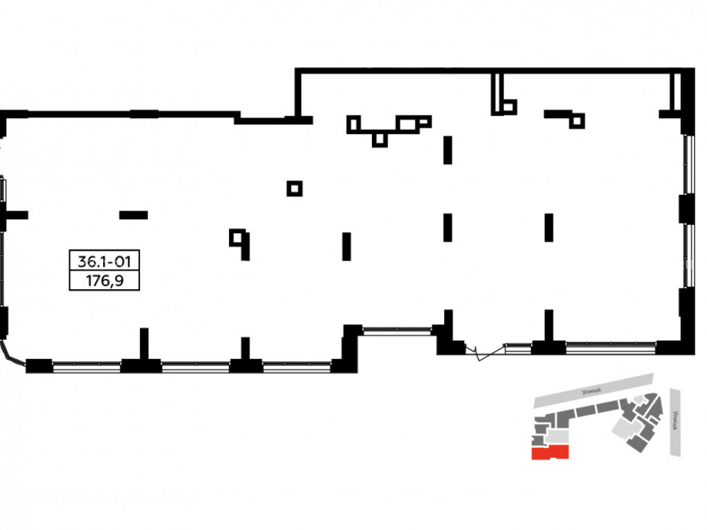 1 этаж 17-ти этажного жилого дома, общей площадью 176.6 м², высота потолков 4,66 м, электрическая мощность 35.46 кВт, Две отдельные входные группы, витринное остекление, зальная планировка, нагрузка на пол 600 кг/м².