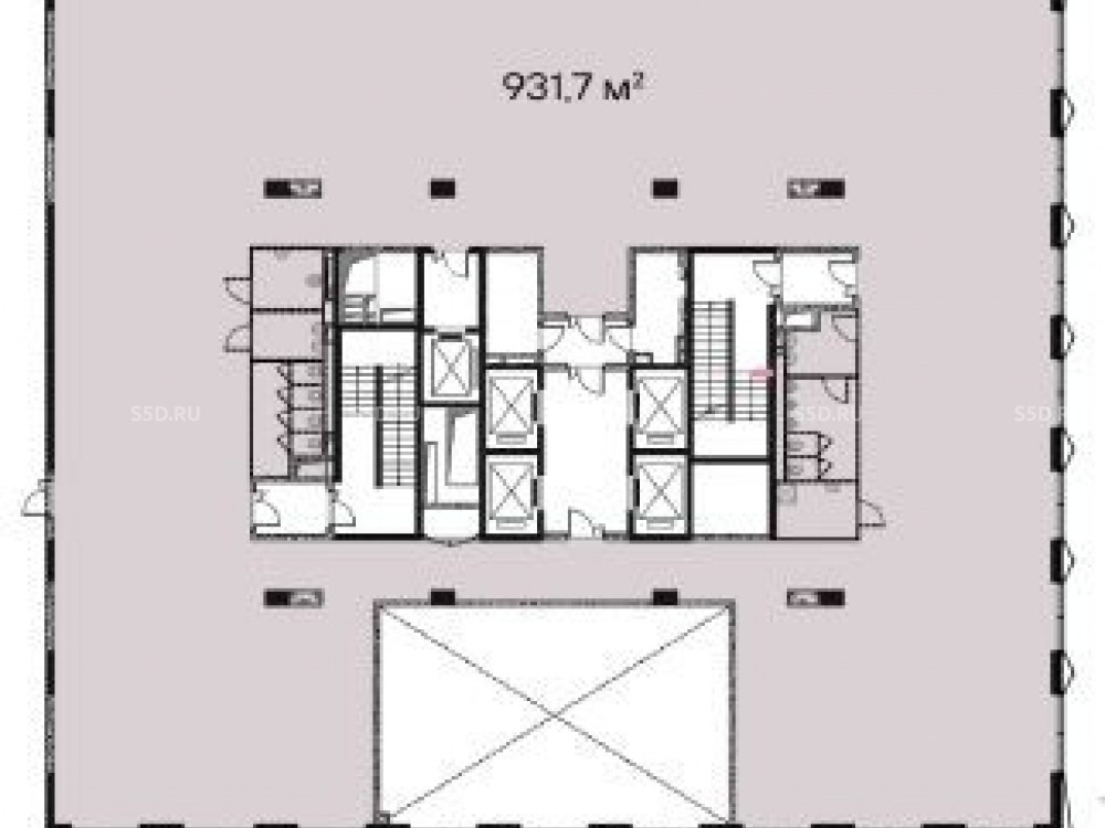 2 этаж в башне S на 117 сотрудников. Помещение площадью 931,7 кв.м. Открытая планировка. Помещение без отделки. Мокрая точка.