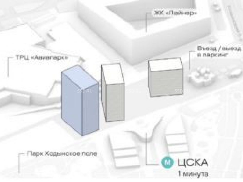 Премиальный офисный квартал расположен в районе Ходынского поля, который граничит с Ленинградским коридором.