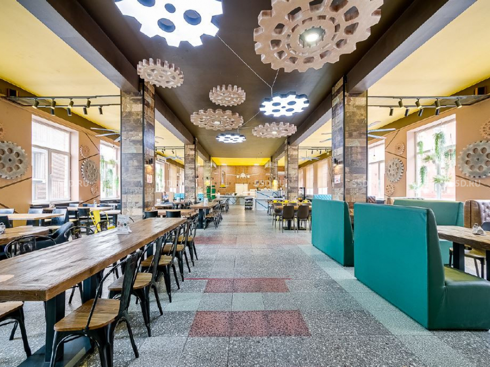 Высота потолка - более 4м. Выполнен ремонт, состояние помещения за выездом столовой. Центральная система кондиционирования.