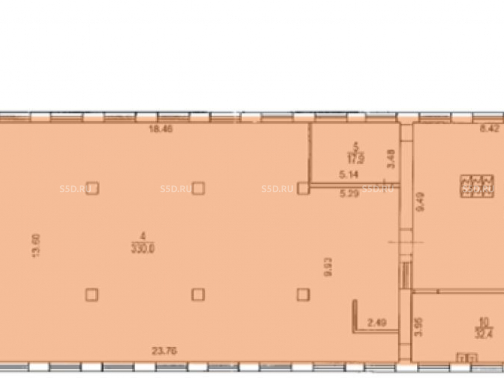 Весь 2 этаж офисного здания. Открытая планировка, с колоннами. Электрическая мощность по запросу.