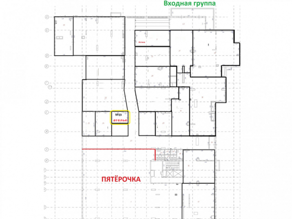 1-ый этаж жилого 10-этажного дома. Общая площадь 14,4 м², Прикассовая зона супермаркета "Пятёрочка". Отдельный вход, витринное остекление, открытая планировка. Мощность электроэнергии 8 кВт. Высота потолков - 4 м.