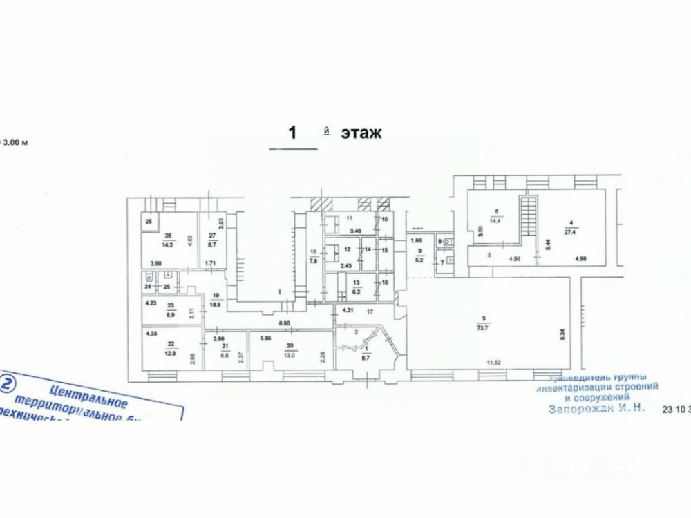 - Первый этаж и подвал 7-ми этажного жилого дома, площадью 489.9 м2.