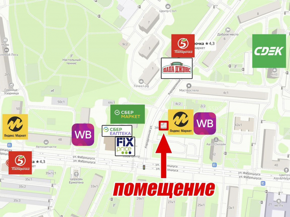 Торговое окружение: Пятёрочка, ЕАптека.