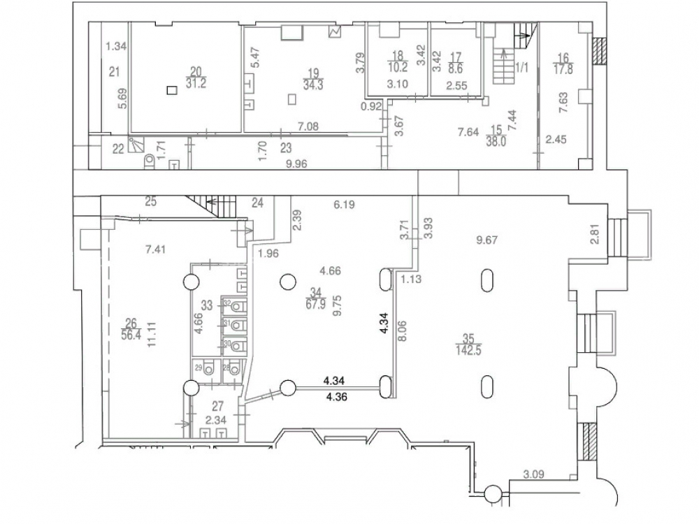 Некоторые помещения уже заняты арендатором - студией звукозаписи, однако существует возможность приобрести пространство полностью.
