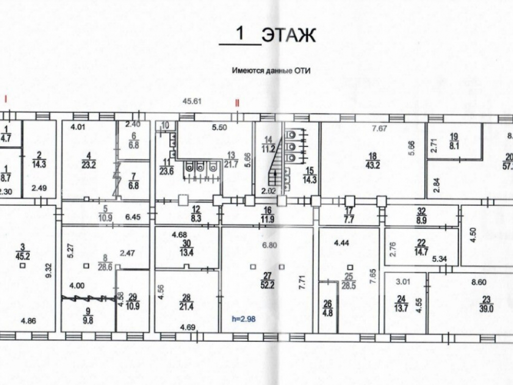 Отдельно стоящее 2-этажное здание. Общая площадь: 1434.3 кв.м. 5 отдельных входов. Капитальный ремонт и замена коммуникаций в 2007 году. Электрическая мощность: 100 кВт. Высота потолков: 3,4 м. ЗУ 2.470 м2