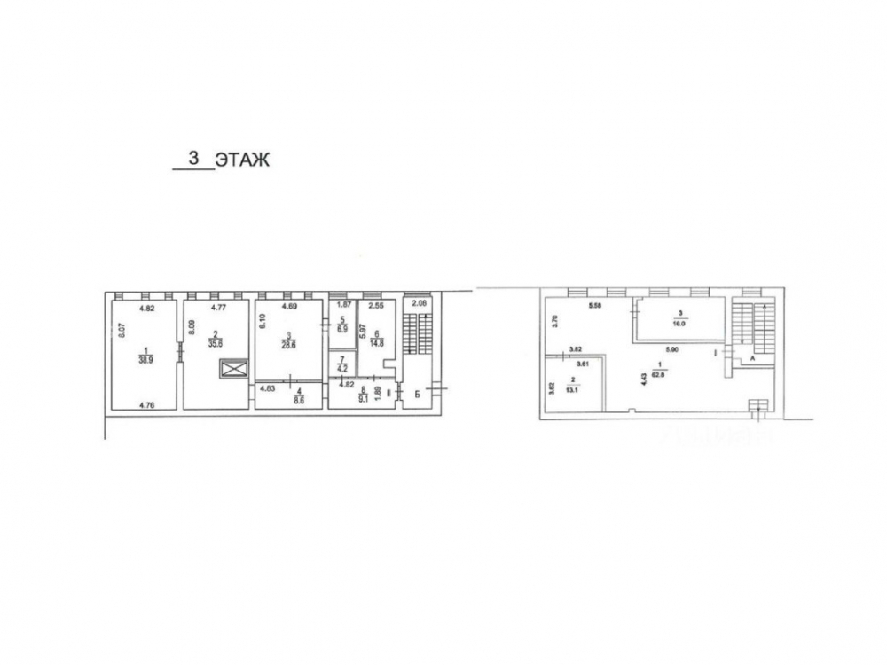 Общая площадь - 3175,1 кв.м., из которых 1 этаж - 1063,8 кв.м., 2 этаж - 1232,7 кв.м., 3 этаж - 267,5 кв.м., подвал - 611 кв.м.