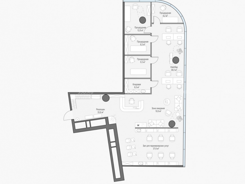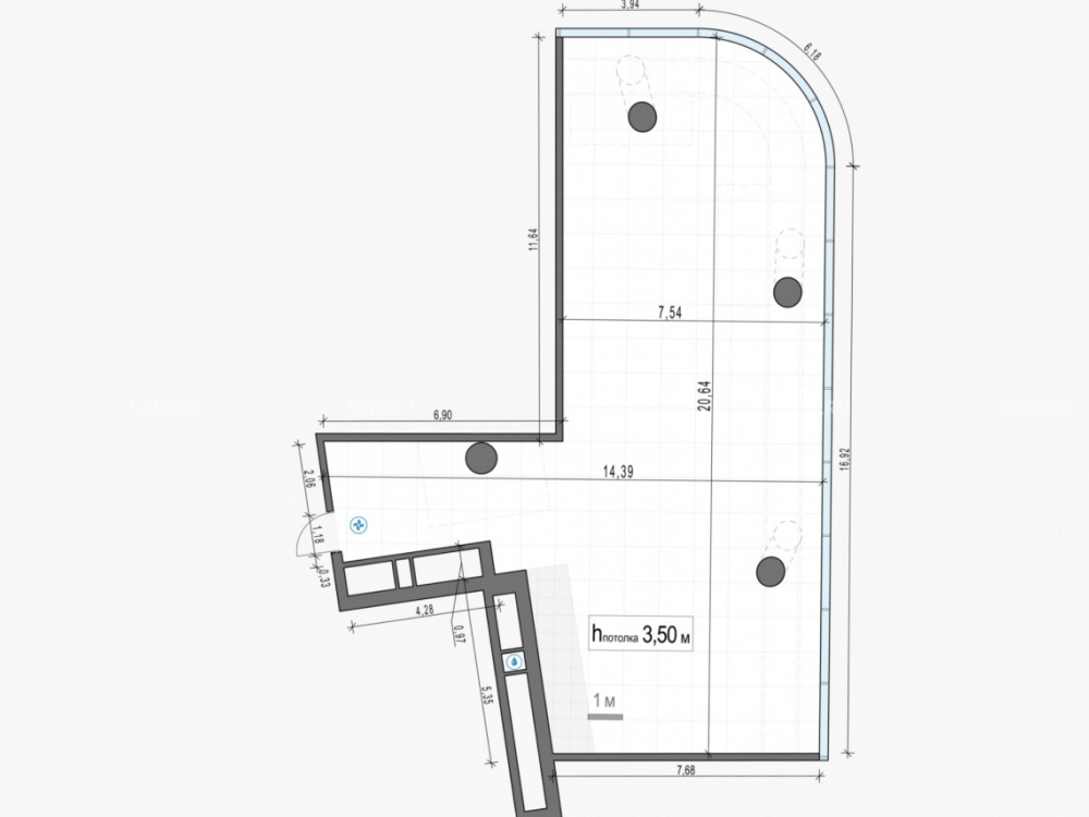 Свободная планировка, отделка shell and core. Мокрая точка.