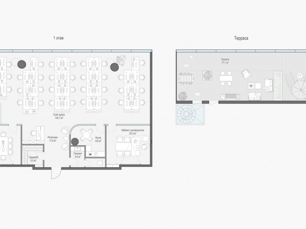 Площадь помещения: 308.9 кв.м. Видовой офис. Панорамное остекление и терраса.