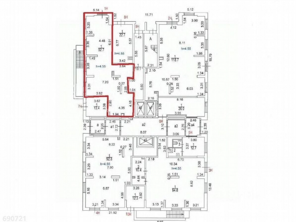 Первый этаж 20 - этажного здания. Общая площадь 95 кв.м. Свободная планировка. Высота потолков 6м. Отделка чистовая. Планировка свободная.
