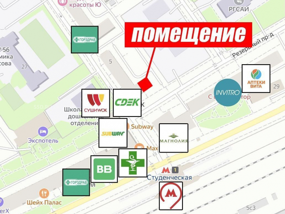 Торговое окружение: Пятёрочка, ВкусВилл, Будь Здоров, Магнолия, СДЭК.