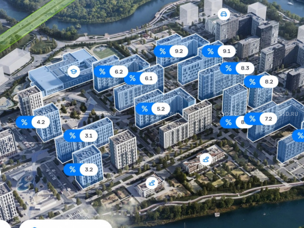 ЖК «Прибрежный Парк» представляет собой 11 монолитно-кирпичных домов высотой от 12 до 17 этажей, расположенных в динамично развивающемся районе Домодедово.