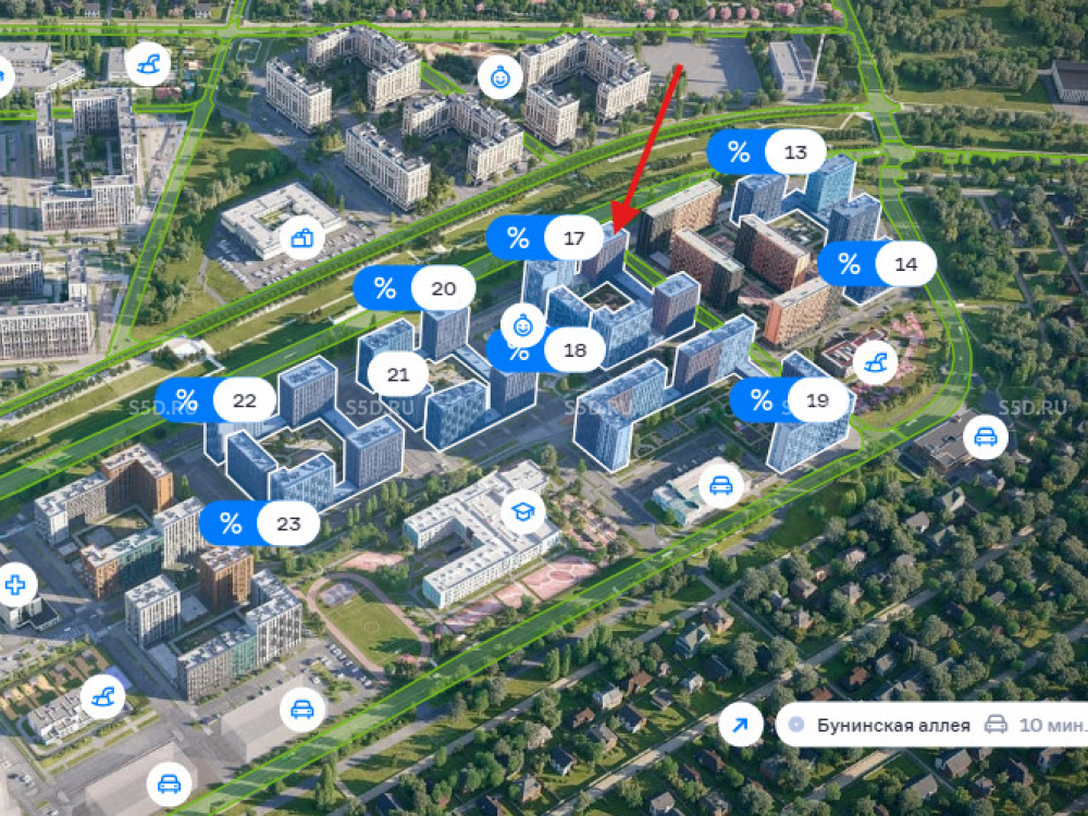 Торговое окружение: Супермаркеты, 3 школы и 5 детских садов, спортивные площадки, детский парк с тематическими островами