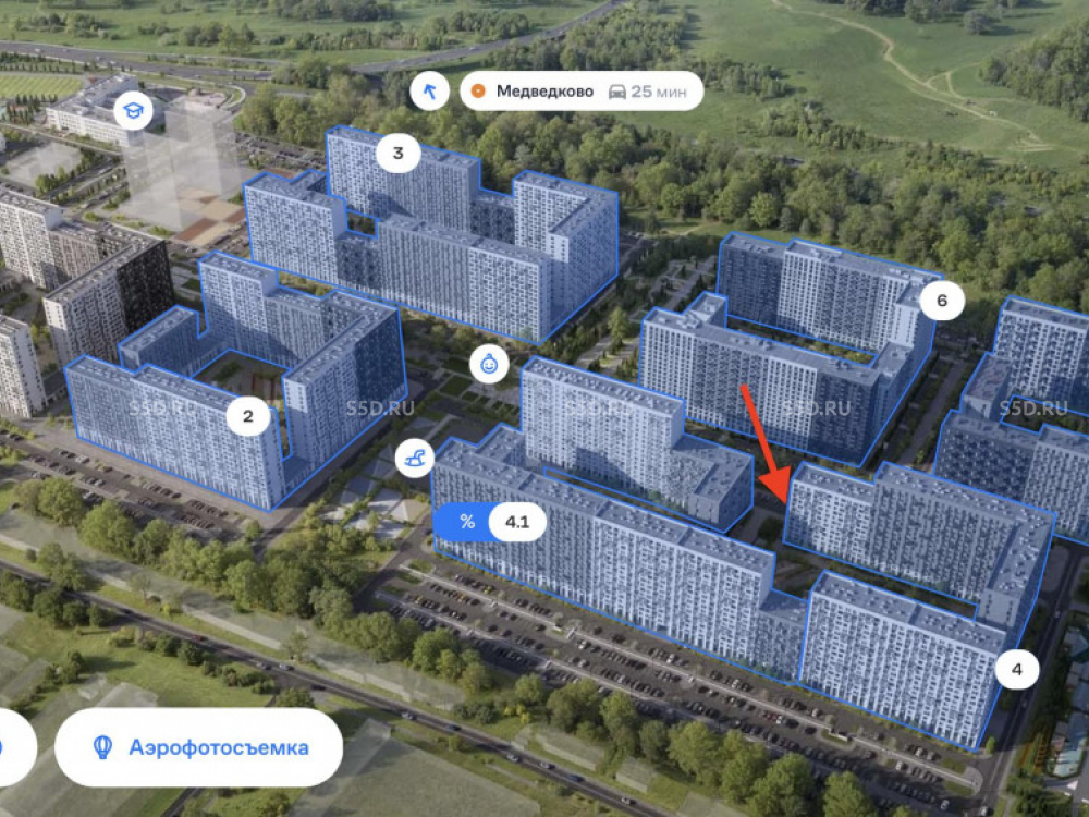 Все квартиры с чистовой отделкой (быстрое заселение) ЖК включает 3 дет. сада и 2 школы. Комплекс расположен в 15 мин на автомобиле от Лосиного острова и Пироговского водохранилища. До м. Медведково 25 минут транспортом.