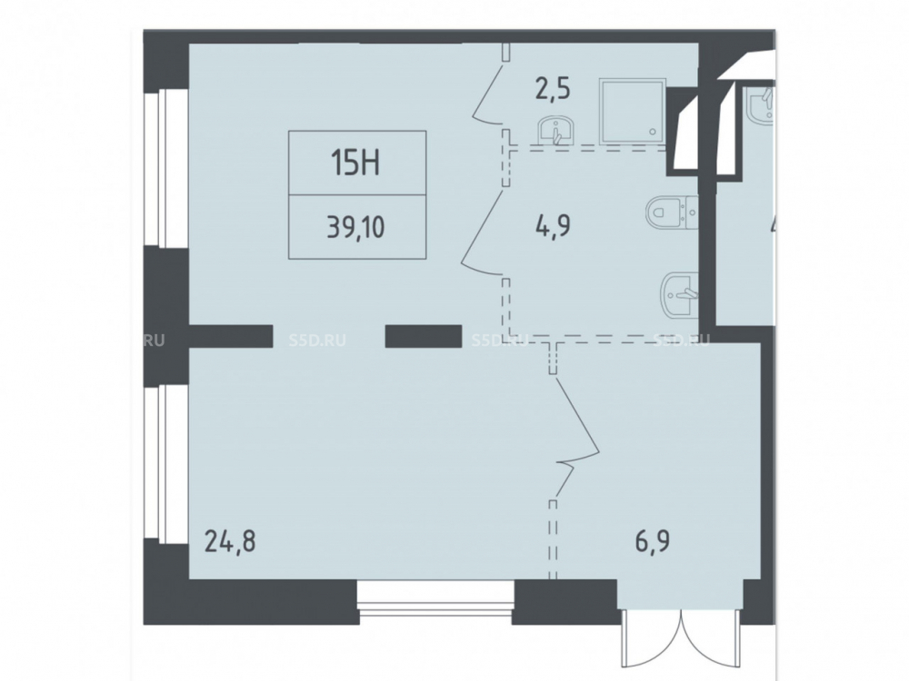 Общая площадь: 39.1 м2