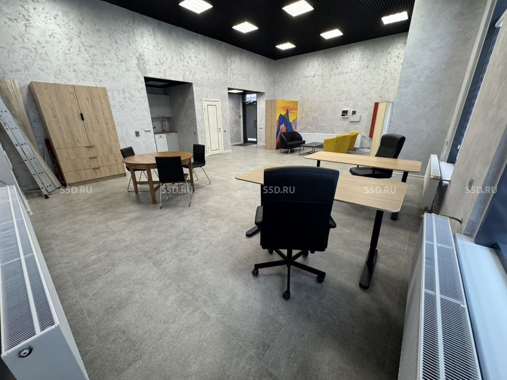 Общая площадь на 1 этаже - 74.1 кв.м. Отдельный вход с фасада и отдельный вход со двора. Имеются парковочные места во дворе. Центральное отопление. Наличие мокрой точки. Мощность электроэнергии по запросу. Зальная планировка, подойдет под любой вид деятельности. Высота потолков - 4.4 м. Первая линия. Офисная отделка.