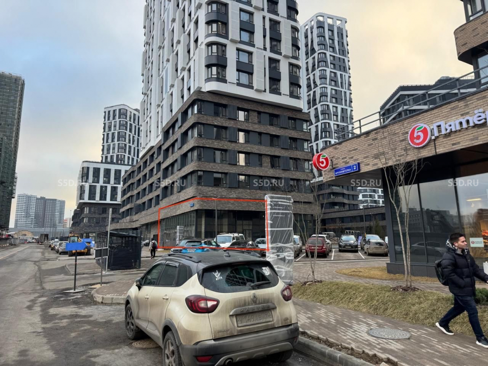 Первый этаж 22-ух этажного жилого дома, площадью 102.9 м2. Угловое помещение. Два отдельных входа. Зальная планировка, витринные окна, высота потолков: 4,75 м. Выделенная мощность: 24 кВт.